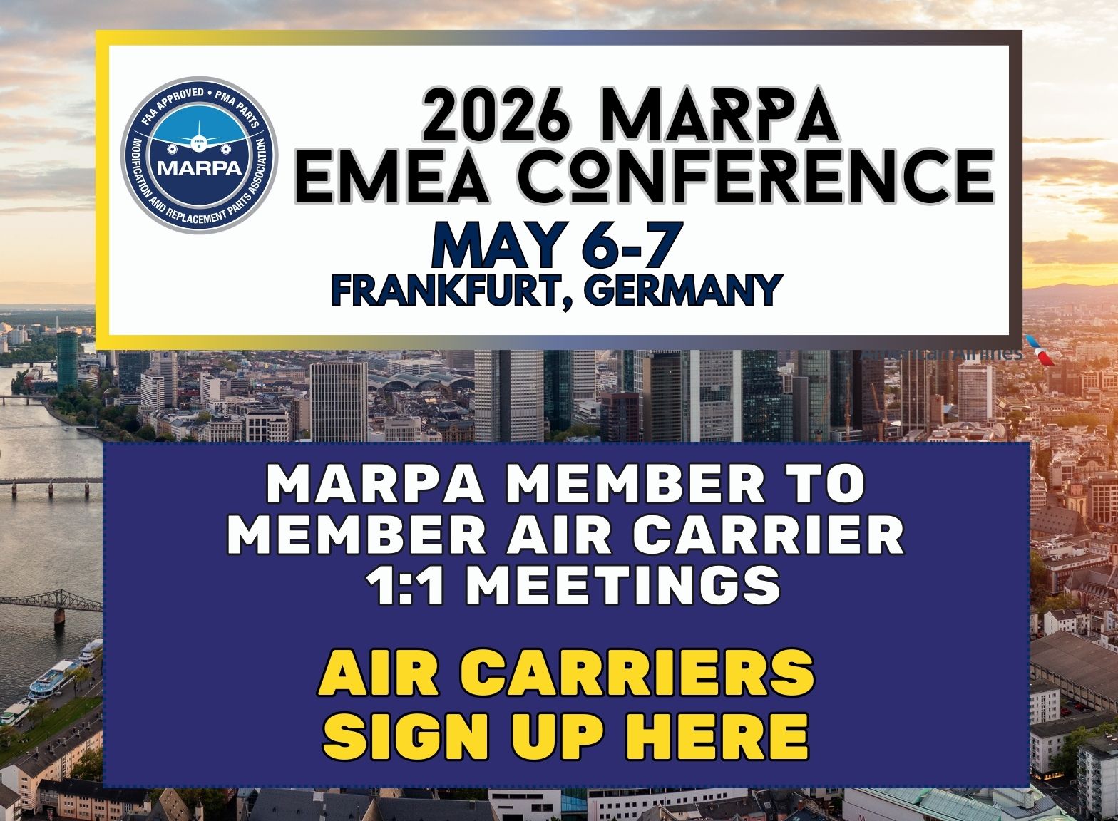 MARPA members can participate in this exciting roundtable-style session between air carriers and manufacturers/suppliers! MARPA Member 1:1 Meetings will take place on May 7th during the 2026 MARPA EMEA Conference in Frankfurt, Germany.
